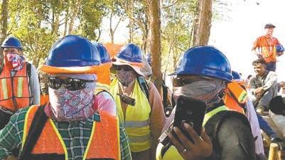 INSPECTORES colocaron sellos a la estructura de madera de la Aldea Kuká, que tenía un avance del 70% en una duna costera.-