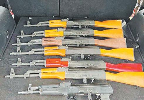 Al interior del vehículo hallaron siete armas de fuego largas, de las cuales no se pudo acreditar la legal procedencia, así como 200 cartuchos útiles y 150 bolsitas de plástico con posible cocaína.