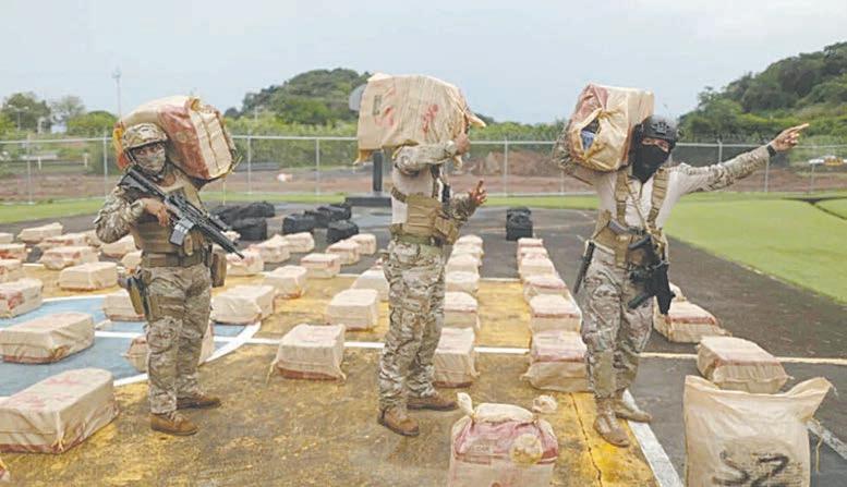 En los envoltorios fueron halladas 714 mil 975 pastillas de fentanilo, con un peso aproximado de 77 kilogramos; 573 mil 740 dosis de metanfetamina, con un peso aproximado de 573 kilogramos, y mil 390 dosis de goma de opio, con un peso aproximado de un kilogramo.