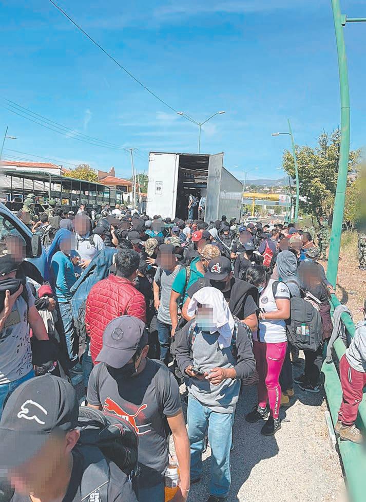 Segundos después de que los soldados, policías y agentes del INM abrieron la caja trasera de dicho tráiler, muchos de los migran-