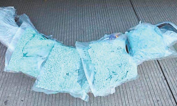 Al examinar minuciosamente la pieza que estaba emplayada, descubrieron cuatro bolsas de plástico ocultas en los huecos del accesorio; al abrirlas encontraron aproximadamente 23 mil pastillas de color azul con las característi cas propias del fentanilo.