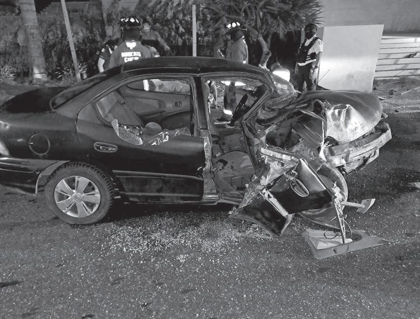Dos lesionados, uno de ellos prensado, dejó un aparatoso accidente en la Zona Hotelera de Cancún, por exceso de velocidad