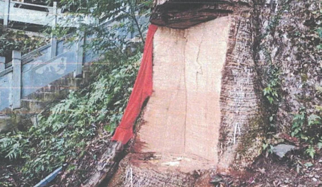 2022, los habitantes de Nanshao descubrieron que una zona de la base del tronco había sido cortada, dejando gravemente herido al árbol, al que llaman el “Antiguo Rey Nambu”.