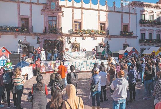 ZACATECAS, Zac.- “¡Zapata no murió, el narcoestado lo mató!”, “¡Francisco y Raúl no murieron, a ellos los mataron!”, “¡Monreal, mentira, dijiste que todo cambiaría y es la misma porquería!”, “¡Estamos marchando porque nos están matando!”, fueron algunas de las consignas que decenas de personas gritaron el día de ayer en la marcha para exigir justicia por los asesinatos de dos jóvenes activistas en Zacatecas.