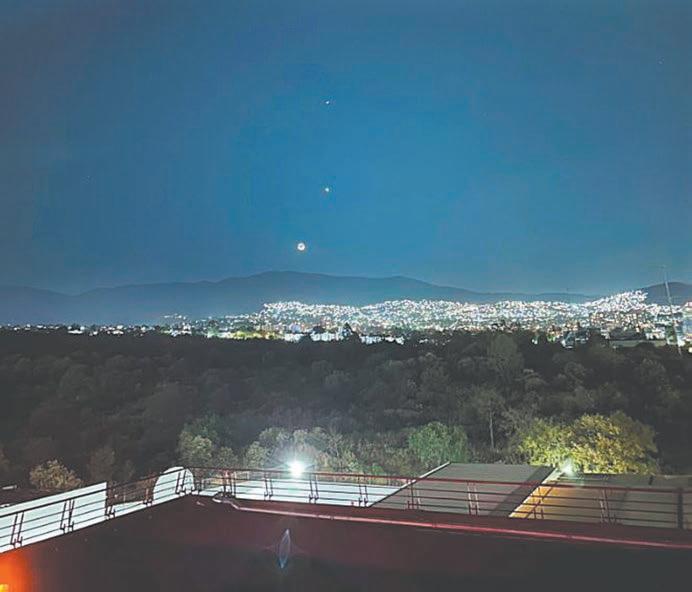 CIUDAD DE MÉXICO.- Aproximadamente a las 20:00 horas de ayer se presenció en el cielo una conjunción planetaria, fenónemo en el que una serie de planetas o satélites se alinean y lo protagonizaron la Luna, Júpiter y Venus.