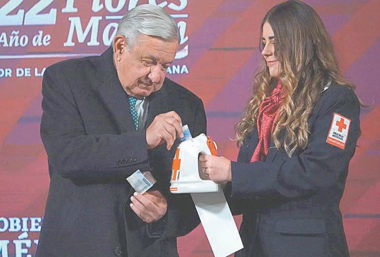 El primero que realizó su aportación a la colecta fue el presidente Andrés Manuel López Obrador, quien ingresó mil 700 pesos en la alcancía de la Benemérita Institución, seguido por el titular de la Secretaría de Gobernación, Adán Augusto López Hernández.