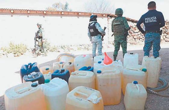 do, Comunicaciones, Cómputo, Coordinación e Inteligencia (C5i) de Hidalgo, que se localizaron dos centros de distribución de hidrocar buro y droga, ambos predios vincu lados a E.O.T., en donde se aseguró combustible presuntamente de pro cedencia ilícita, hierba seca con ca racterísticas previas de la marihuana y sustancia granulada con las carac terísticas de droga sintética (cristal).