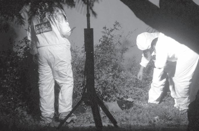 Al lugar del hallazgo arribaron elementos de los servicios periciales de la FGE, quienes se hicieron cargo de procesar la escena del crimen para el levantamiento, embalaje de indicios, y posteriormente trasladaron el cadáver al Servicio Médico Forense (Semefo) para la necropsia y los trámites de ley correspondientes.