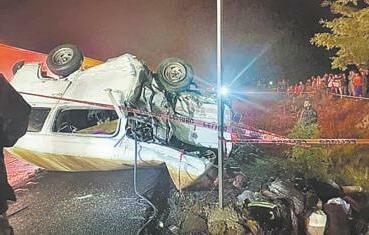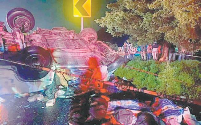 CIUDAD DE MÉXICO.- Un saldo de ocho personas muertas y siete más lesionadas fue lo que dejó la volcadura de una unidad tipo combi que circulaba sobre la autopista Arco Norte.