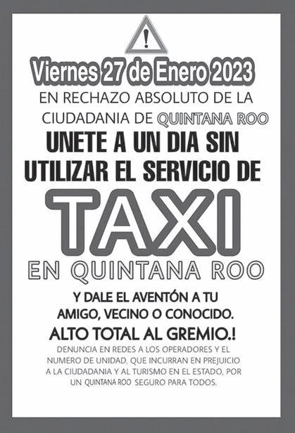 Los habitantes y visitantes en el Estado viajan entre malos tratos, abusos e indolencia de conductores del transporte público sin capacitación, producto de los gremios, que gozan de prebendas y cuotas de poder / Acusa turista intento de acoso sexual de un taxista de Cozumel; en redes, ciudadanos alientan boicot de un día contra ruleteros de Cancún / Balean a un menor de edad en la Región 223