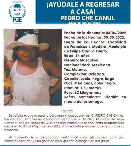 Aunado a esto, el domingo pasado se encontró en una sascabera, ubicada a poco más de 11 km de la comunidad de Tres Garantías , otro cadáver, de igual manera en estado de descomposición y que, presuntamente, presentaba impactos de arma de fuego.