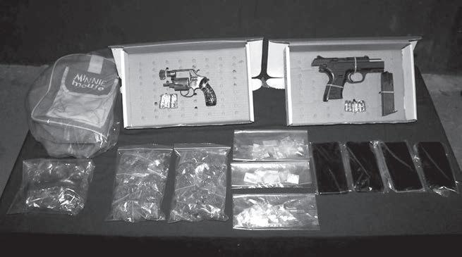 17, con presunto cristal ; 65, con supuesta marihuana, cuatro celulares, un arma corta con seis cartuchos, un arma corta con un cargador y seis cartuchos.