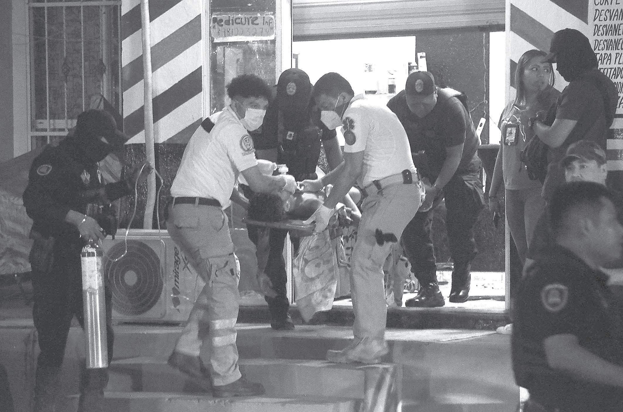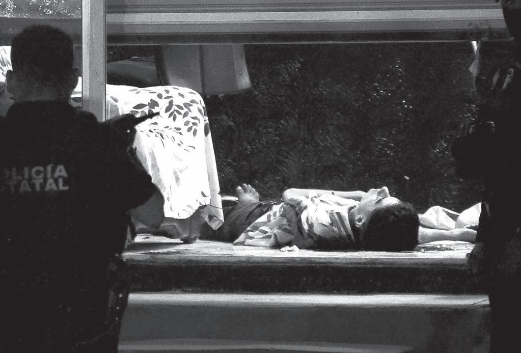 de una de las víctimas; otros vecinos de edificios cercanos salieron luego de escuchar las sirenas de las patrullas que se acercaban, así como de la unidad médica. La zona fue acordonada, debido a la presencia de los curiosos que permanecían en el estacionamiento mirando al interior de la barbería, donde uno de los hombres yacía sobre un charco de sangre, apa-