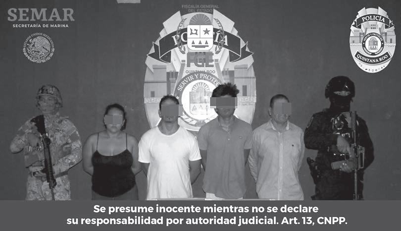 Elementos de la Policía Quintana Roo realizaron la detención de David “N”, Adonias “N”, Pascual “N” y Teresa “N”, por su probable participación en delitos contra la salud y portación de arma de fuego, luego de ser detectados por los policías intercambiando bolsas de droga.