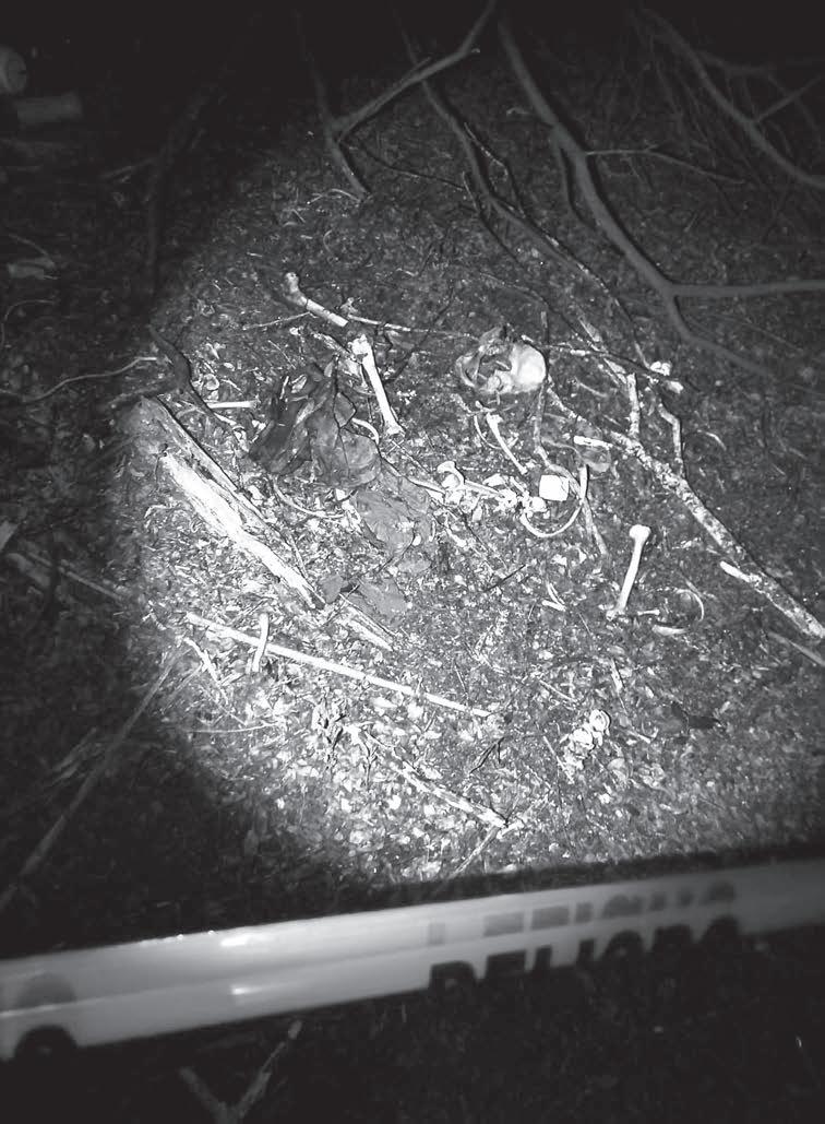 a una persona, además de ropa, presumiblemente de la víctima; un pantalón de mezclilla en color azul, playera de color verde y ropa interior en color rojo, mismos que junto con la osamenta fueron trasladados a las instalaciones del Servicio Médico Forense ( Semefo ). Las autoridades no dieron a conocer si ubicaron casquillos u otros indicios que ayudaran a conocer las causas del deceso.