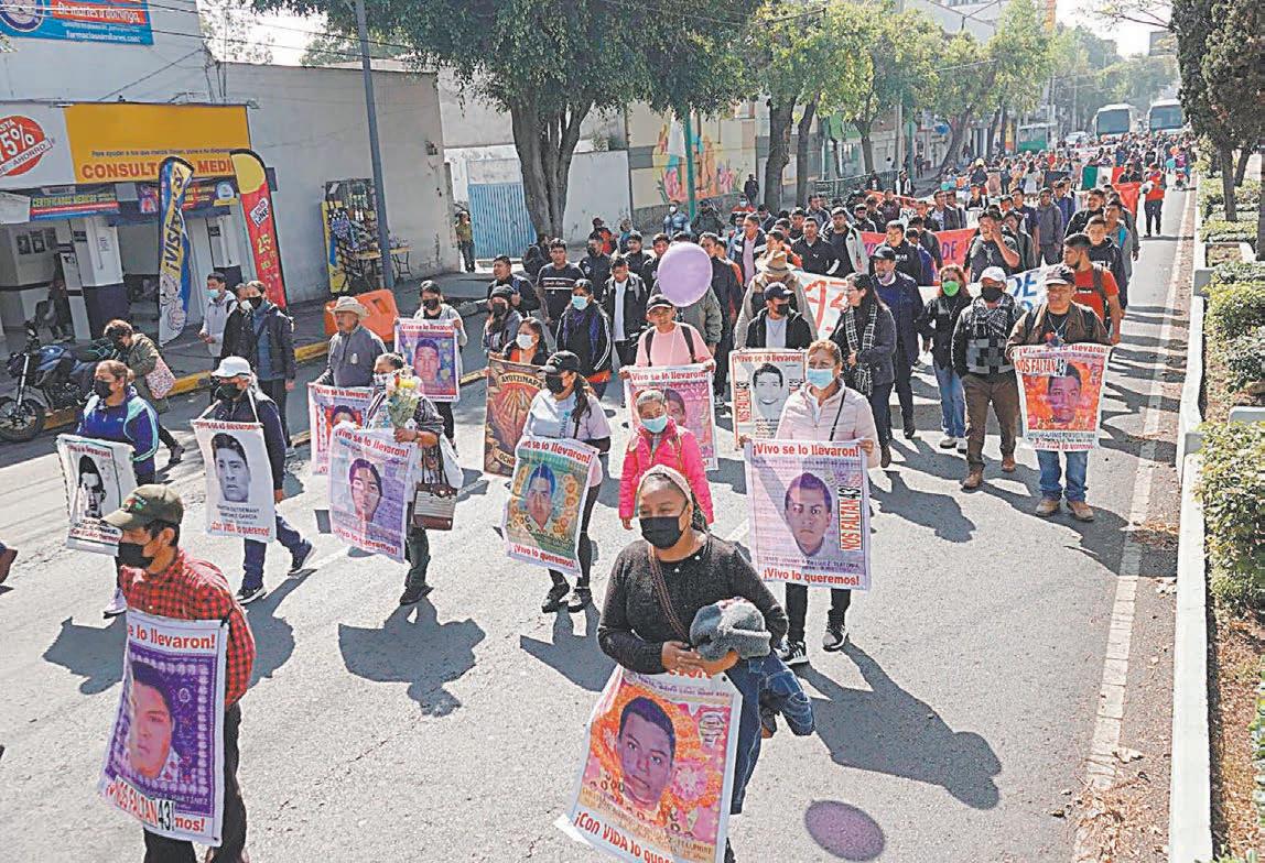 CIUDAD DE MÉXICO.- Padres de los 43 normalistas de Ayotzinapa, estudiantes y colectivos marcharon ayer durante su movilización anual a la Basílica de Guadalupe, con motivo de 99ª. Acción Global por el caso y por la búsqueda de la justicia.