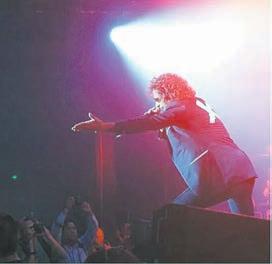 pastelería caminando alrededor del establecimiento para tratar de asustar al oso, pero comenzaron a correr luego de que el animal los asustó.