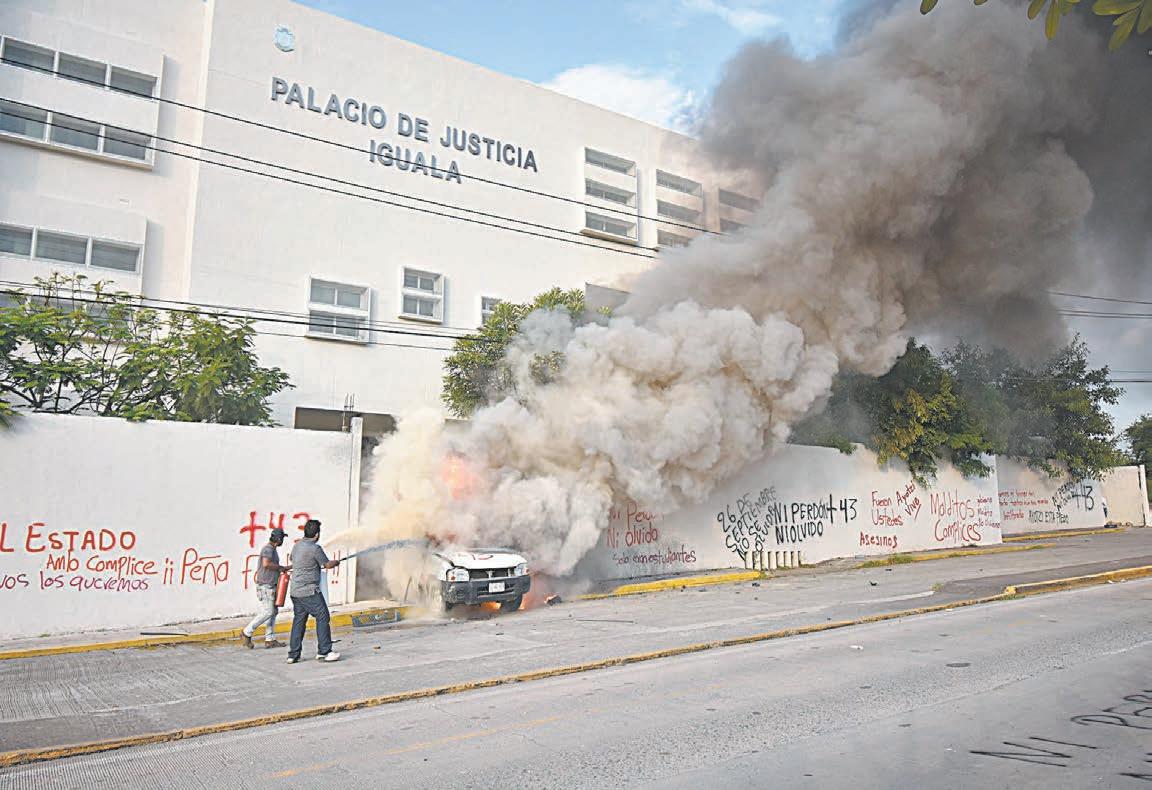 CIUDAD DE MÉXICO.- Tras realizar una marcha y mitin en la ciudad de Iguala, donde estuvieron acompañados por padres de fami lias e integrantes de organizacio nes sociales, estudiantes de la Es cuela Normal Rural “Raúl Isidro Burgos” de Ayotzinapa vandalizaron las instalaciones del Palacio de Justicia de Iguala.