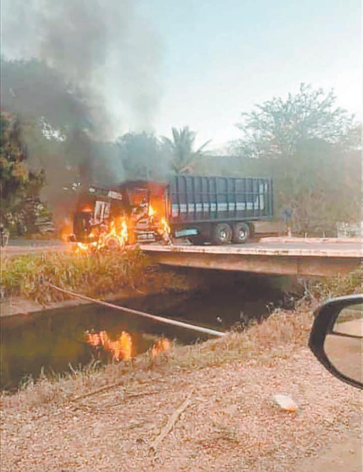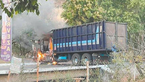 También se registró el incendio de un vehículo de carga sobre la carretera El Grullo-Unión de Tula, a la altura del Puente Puerta de Barro, a donde arribaron oficiales es-