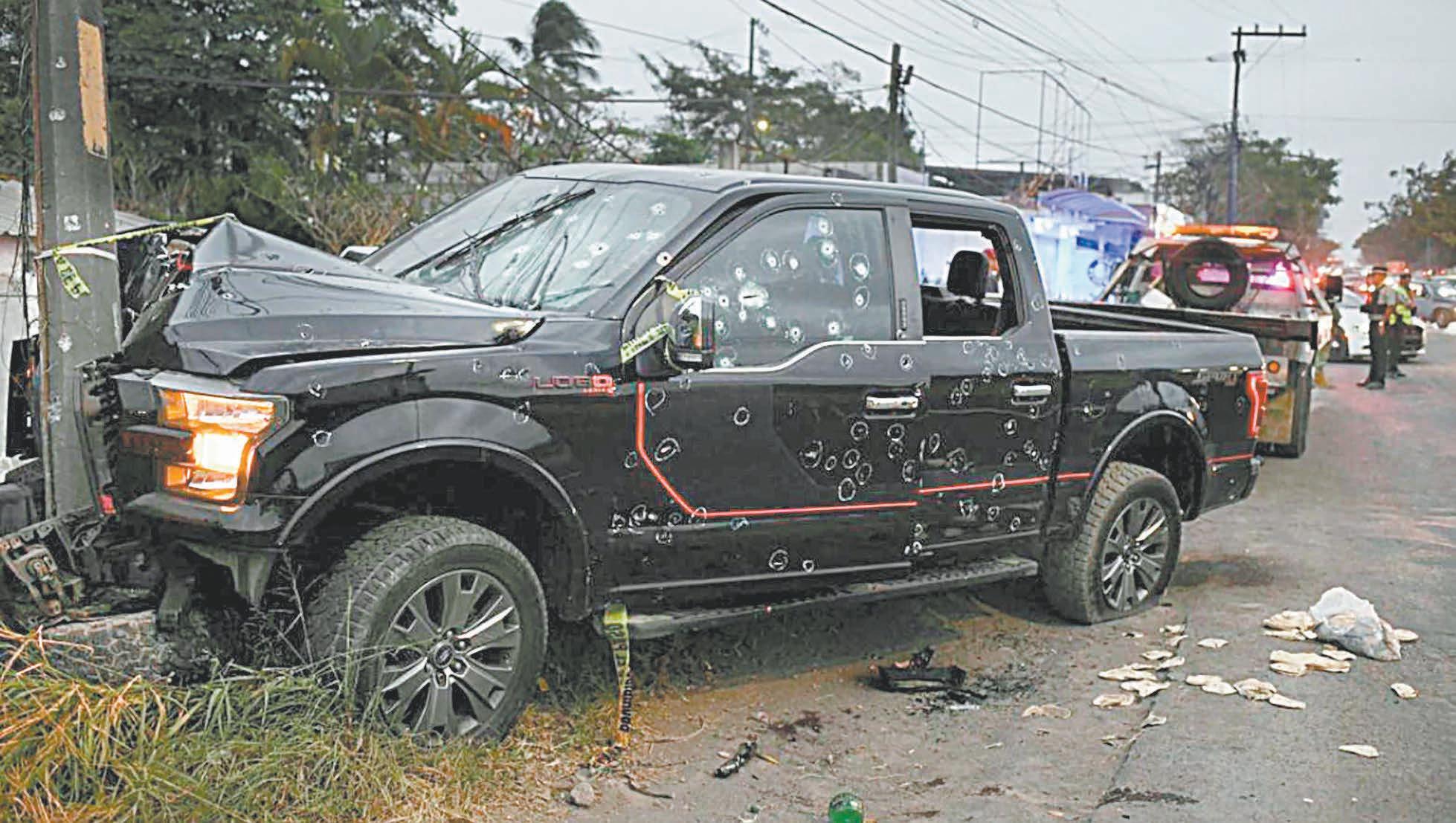 En el interior de la camioneta Ford, la cual quedó impactada contra un poste de electricidad, cinco personas fueron asesinadas a tiros, entre ellos dos menores de edad; en tanto, en el interior del taxi, el hombre que iba como copiloto murió y el conductor resultó herido de bala.