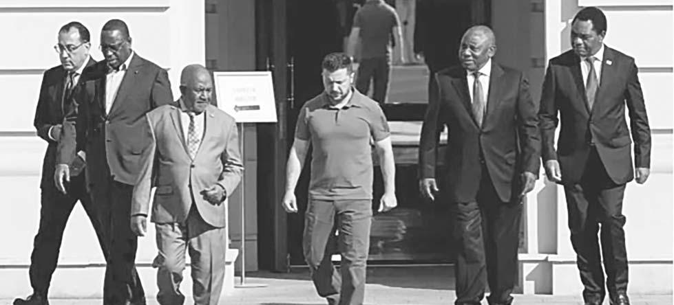 Además de Ramaphosa, la comitiva está integrada por el presidente senegalés, Macky Sall; el de Zambia, Hakainde Hichilema; y representantes congoleses, ugandeses y egipcios.
