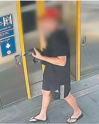 Imágenes de cámaras de videovigilancia muestran a un hombre caminar por el andén de una estación en el Norte de Brisbane y acariciar al animal bajo su brazo.