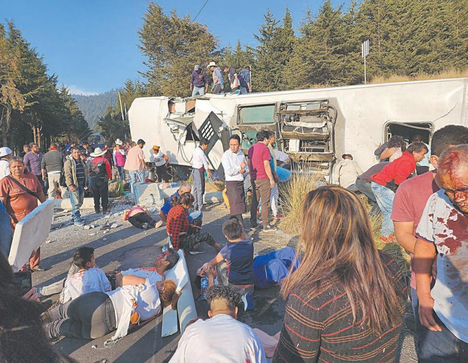 El fatal accidente ocurrió ayer por la tarde en la carretera México-La Marquesa en el km 34.5 en el Valle Turimex, en la desviación a Chalma, cuando el operador del autobús de la empresa Flecha Roja, con número económico 202, perdió el control hasta salir de la cinta asfáltica.