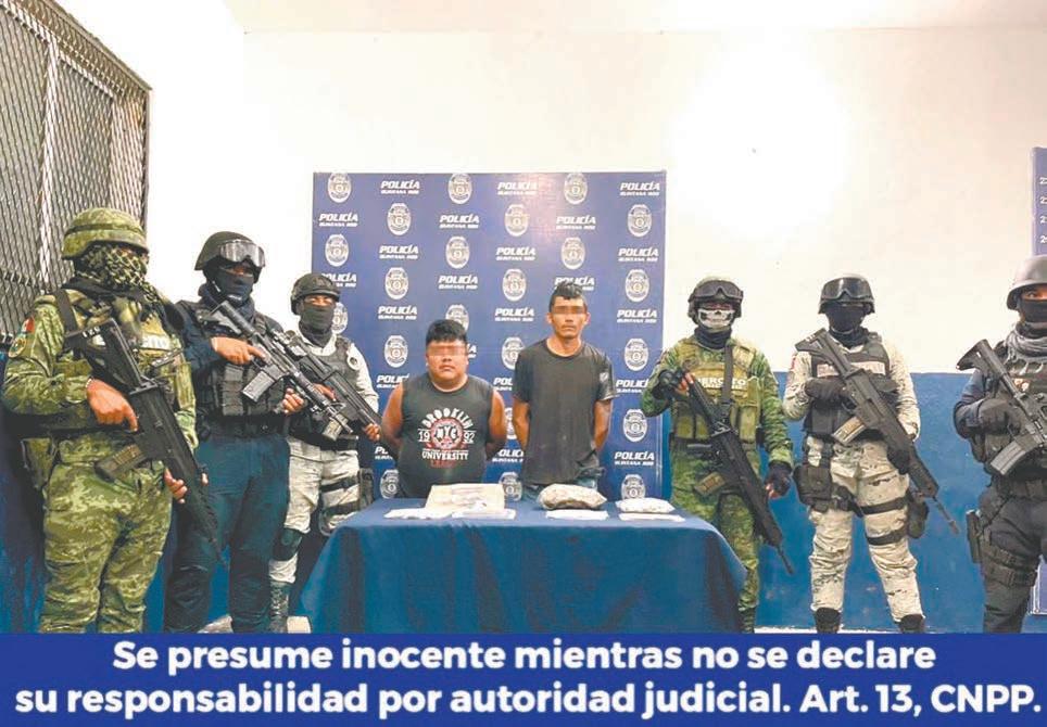 además de armas y dinero. La acción policiaca fue ejecutada el pasado martes por elementos de la Secretaría de la Defensa Nacional (Sedena) y la Fiscalía General del Estado (FGE) en el municipio de Irapuato, Guanajuato, informó ayer el Gobierno de México. Durante la operación, las autoridades lograron asegurar 100 kg de mariguana; 53 kg de metanfetamina, 1 kg de cocaína, tres armas de fuego (una larga y dos cortas), 25 cargadores, 485 cartuchos, 30 artefactos explosivos improvisados, seis motocicletas, tres vehículos; 239 mil 950 pesos y 24 dólares estadounidenses, así como seis chalecos tácticos y seis inmuebles. Sobre las 10 personas que fueron detenidas durante la operación se informó que fueron puestos a disposición de las autoridades competentes para que se realicen las investigaciones y acciones periciales que confirmen el tipo y cantidad de droga. (Agencias)