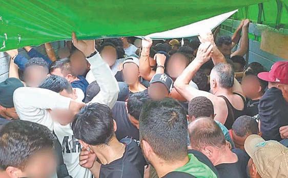 El chofer y su copiloto huyeron entre los matorrales. En el camión viajaban hacinadas 123 personas migrantes originarias de República Dominicana, El Salvador, Georgia, Ecuador, Pakistán, Brasil, Guatemala, Albania, Honduras, India, Azerbaiyán y Uzbekistán. (El Universal)