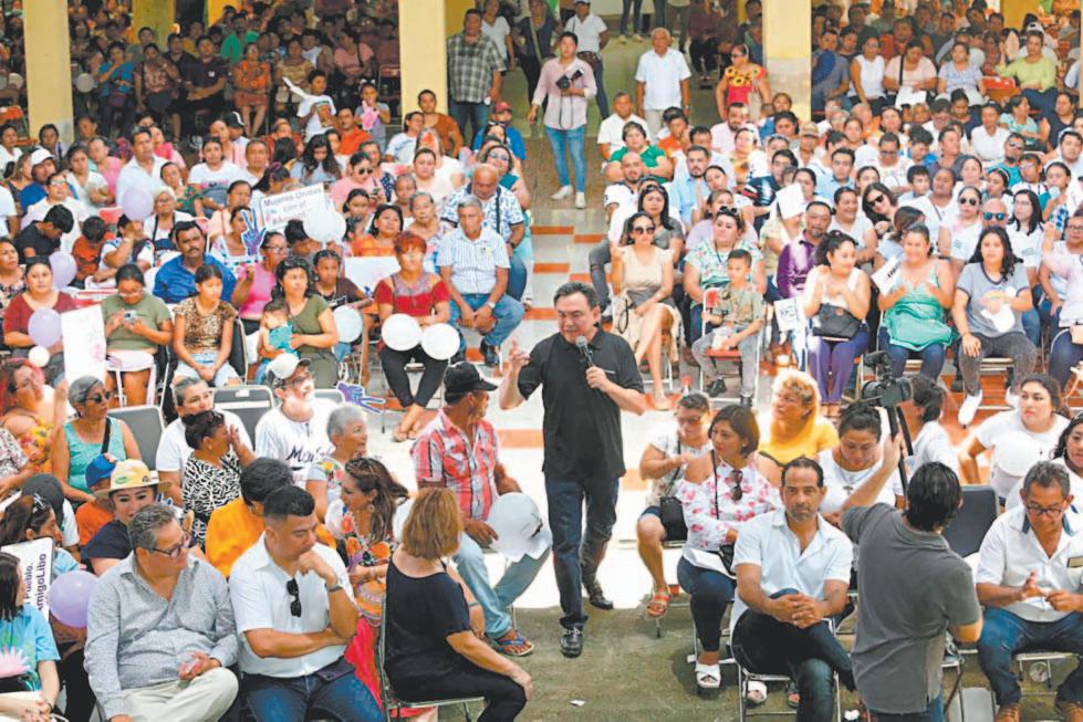 VILLAHERMOSA.- Al grito de ¡Presidente, Presidente!”, Adán Augusto López Hernández llegó ayer a Cárdenas, Tabasco, para celebrar su primera asamblea informativa en su Estado natal, y volvió a arremeter contra la empresa Televisa que, asegura el aspirante presidencial, lo tiene vetado en sus noticiarios.