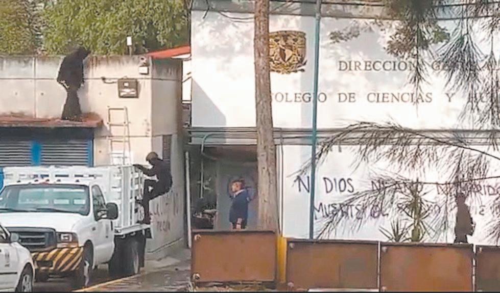 CIUDAD DE MÉXICO.- Un grupo de encapuchados bloqueó ayer la vialidad de ambos sentidos de la avenida Insurgentes Sur frente a la torre de Rectoría de la Universidad Nacional Autónoma de México (UNAM) y, posteriormente, se introdujo a la dirección general del Colegio de Ciencias y Humanidades (CCH) en Ciudad Universitaria.