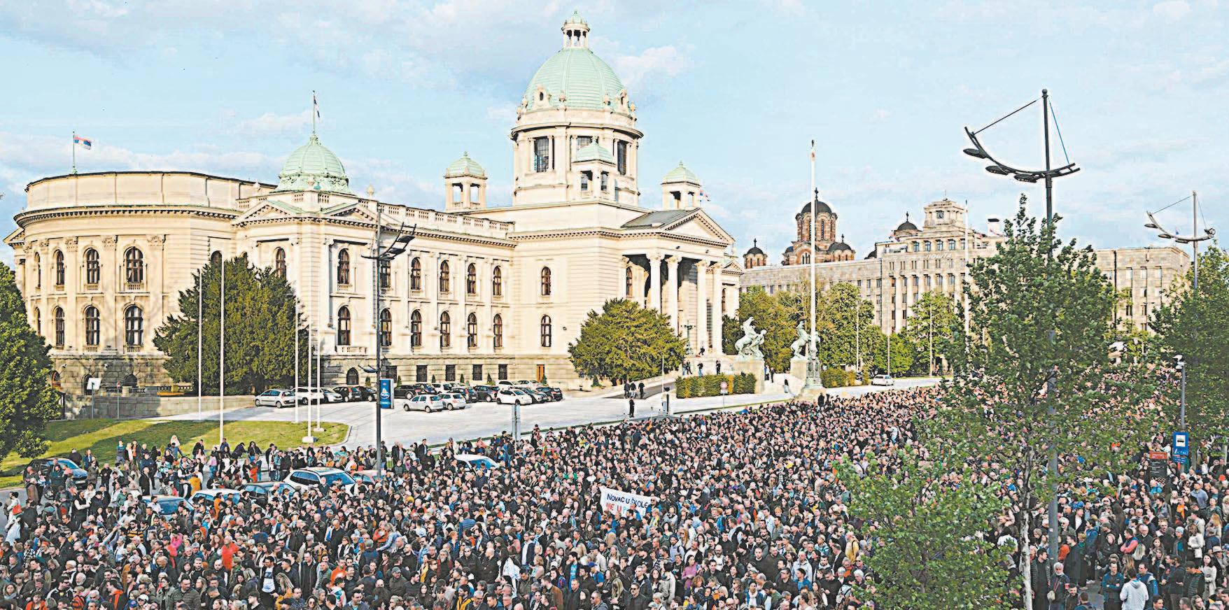 Afectados por las dos matanzas, los manifestantes se reunieron ante el Parlamento, en el centro de Belgrado, bajo la consigna “Serbia contra la violencia”, convocados por varios partidos de oposición.