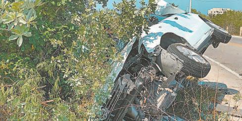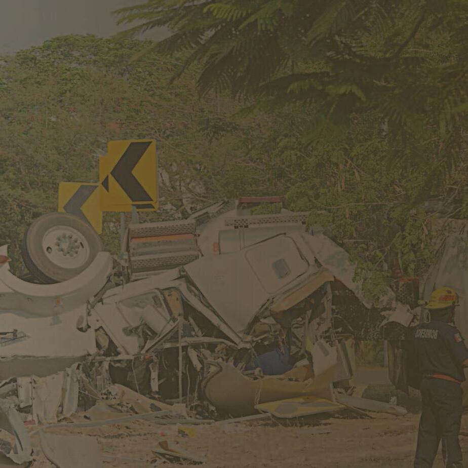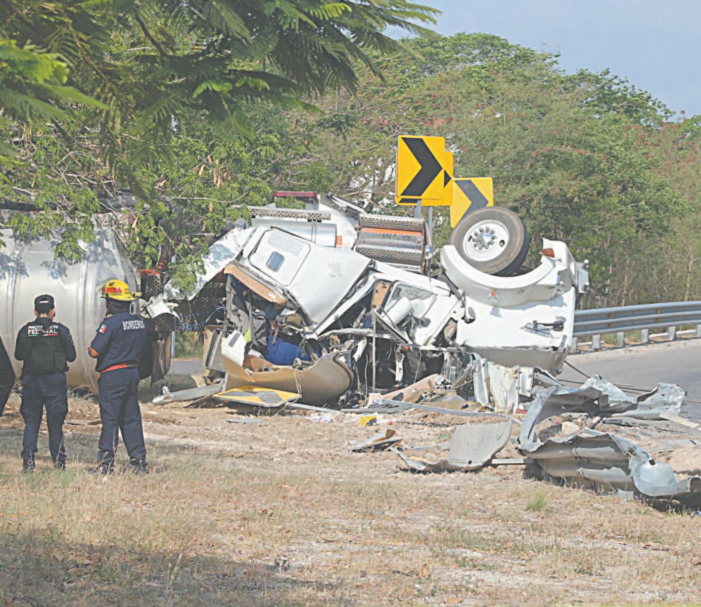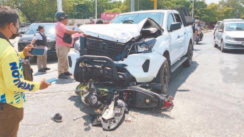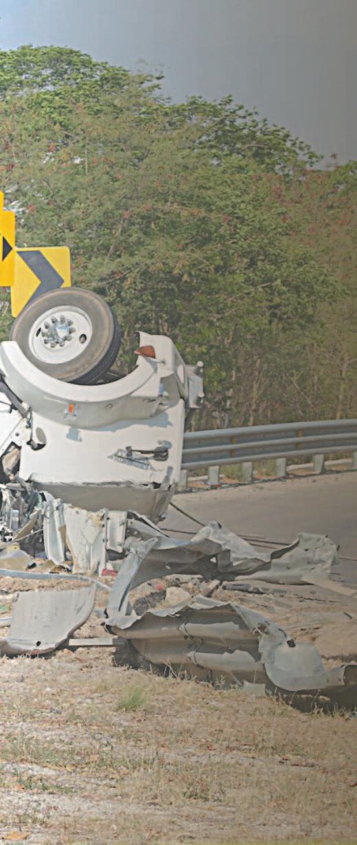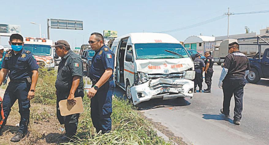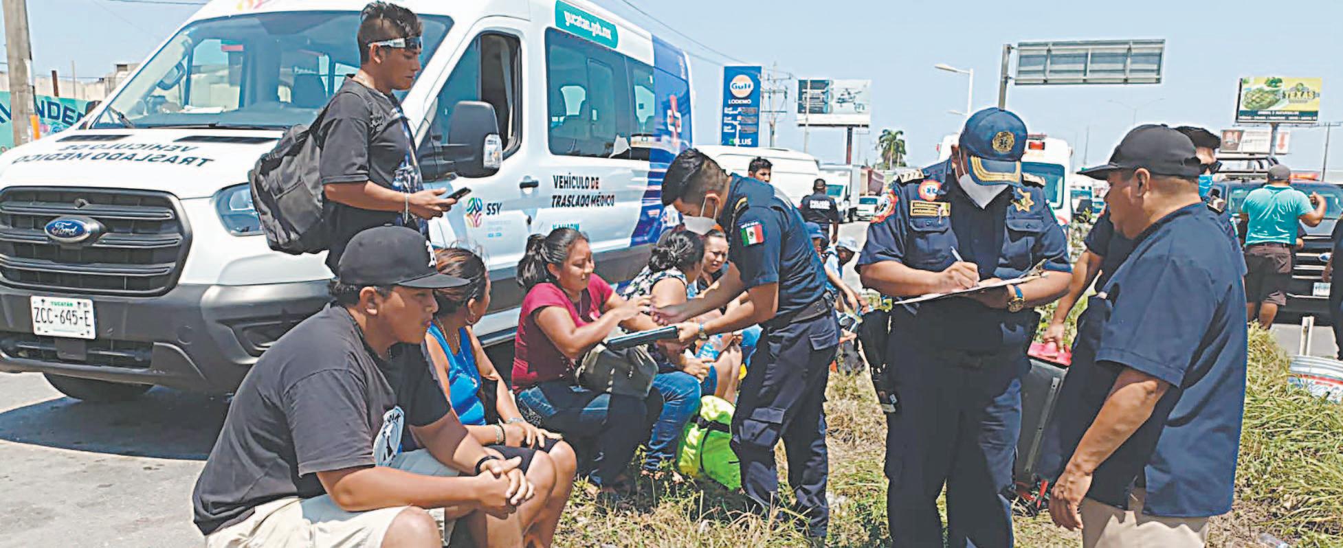 UNA unidad transportista que se dirigía a Sotuta embistió a un vehículo que intentó dar vuelta en “U”, en el puente de San Pedro Nohpat. Varios ocupantes salieron disparados por NO usar cinturón de seguridad.- (Ernesto Pinzón)