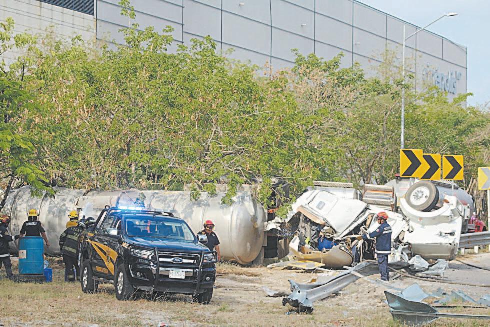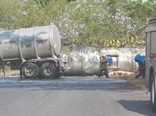 Se vuelca un doble remolque con 32 mil litros de turbosina en Mérida
