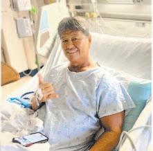 Se trata del surfista Mike Morita, quien, según su hijo, su padre no ha perdido el sentido del humor tras el accidente, en el que un aparente tiburón tigre lo atacó en Kewalos, en la costa Sur de Oahu, un lugar donde seguido se pueden ver este tipo de especies.