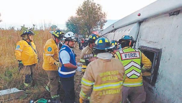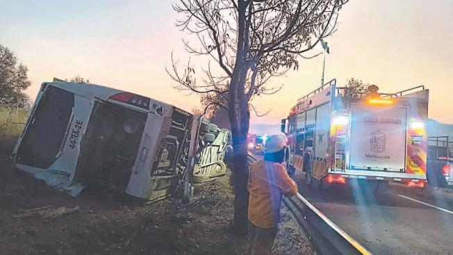 URUAPAN, Mich.- Ayer por la mañana se registró la volcadura de un autobús de turistas sobre la carretera Morelia-Pátzcuaro, a la altura de la tenencia de Tiripetío, el cual tenía como destino el Pueblo Mágico de Tlalpujahua, dejando un saldo de siete personas fallecidas y 17 lesionadas, informó la Policía de Morelia. La información también fue confirmada por la Coordinación Estatal de Protección Civil de Michoacán (CEPCM), donde ambas dependencias trabajaron para acor-