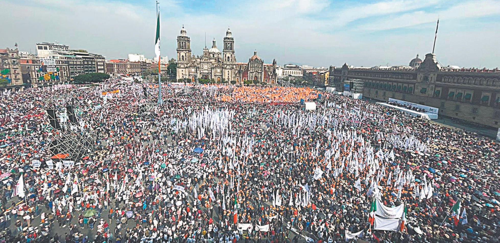 CIUDAD DE MÉXICO.- Ante más de 600 mil mexicanos reunidos en el Zócalo de la Ciudad de México, la presidenta Claudia Sheinbaum celebró ayer los siete años de la llegada de la Cuarta Transformación y puntualizó que por más campañas sucias y alianzas de grupos del conservadurismo nacional e internacional que buscan intervenciones extranjeras, no podrán vencer al pueblo ni a la Jefa del Ejecutivo Federal, ya que el movimiento representa una ruptura con el viejo régimen y una transformación verdadera, económica, social y moral que se guía por el Humanismo Mexicano.