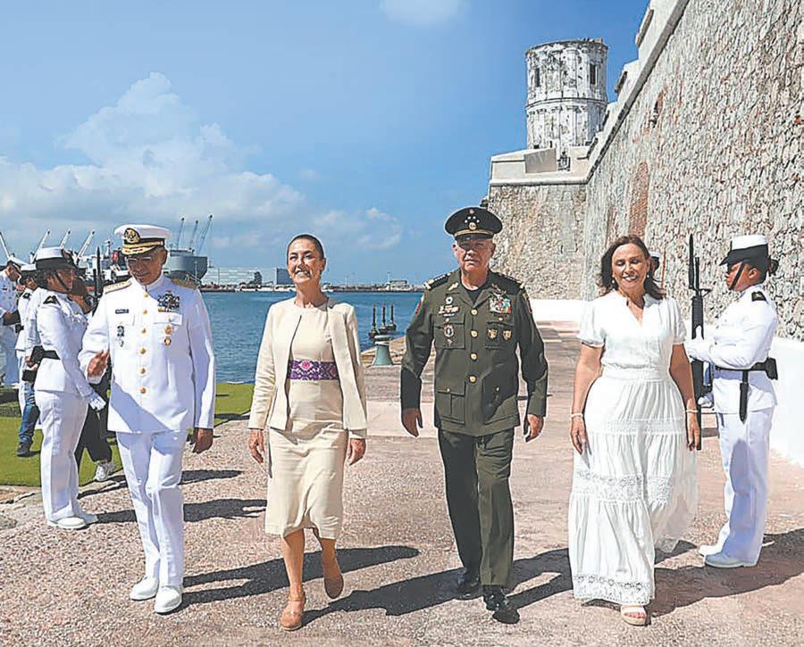 Al encabezar en el puerto de Veracruz la conmemoración del Bicentenario de la Consolidación de la Independencia en el Mar, acompañada del secretario de Marina, almirante Raymundo Pedro Mora- les Ángeles, la Mandataria federal advirtió que la historia del país demuestra que jamás han triunfado los proyectos que buscan apoyarse en la fuerza, la violencia o el respaldo extranjero para imponerse.