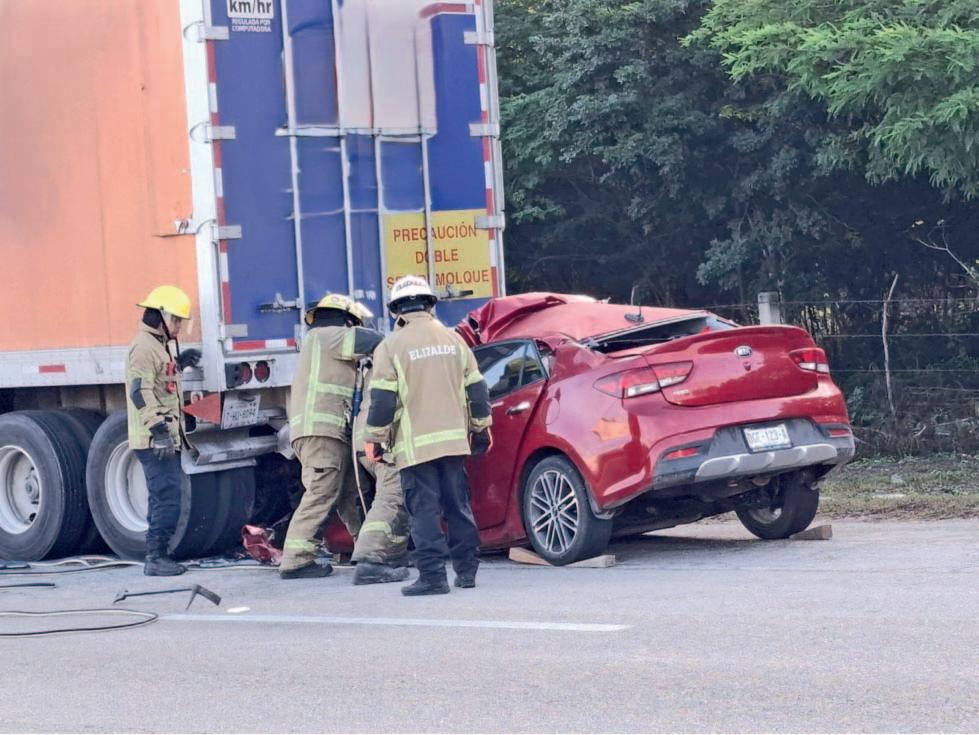 UN docente falleció al quedar prensado entre los fierros retorcidos de su vehículo; el equipo de rescate trabajó por más de una hora para poder liberar el cuerpo. La víctima laboraba en la Secundaria Técnica 14, de Dzitbalché, y la 36, de San Antonio Sahcabchén, en Hopelchén; era además representante sindical.- (Amado Caamal)