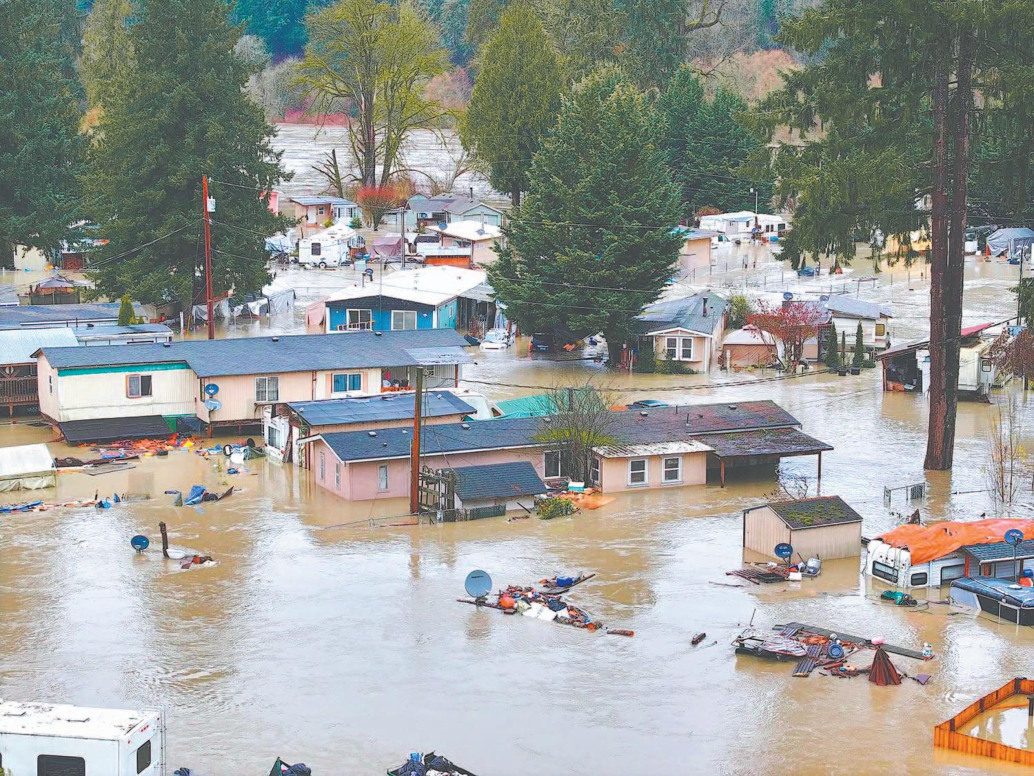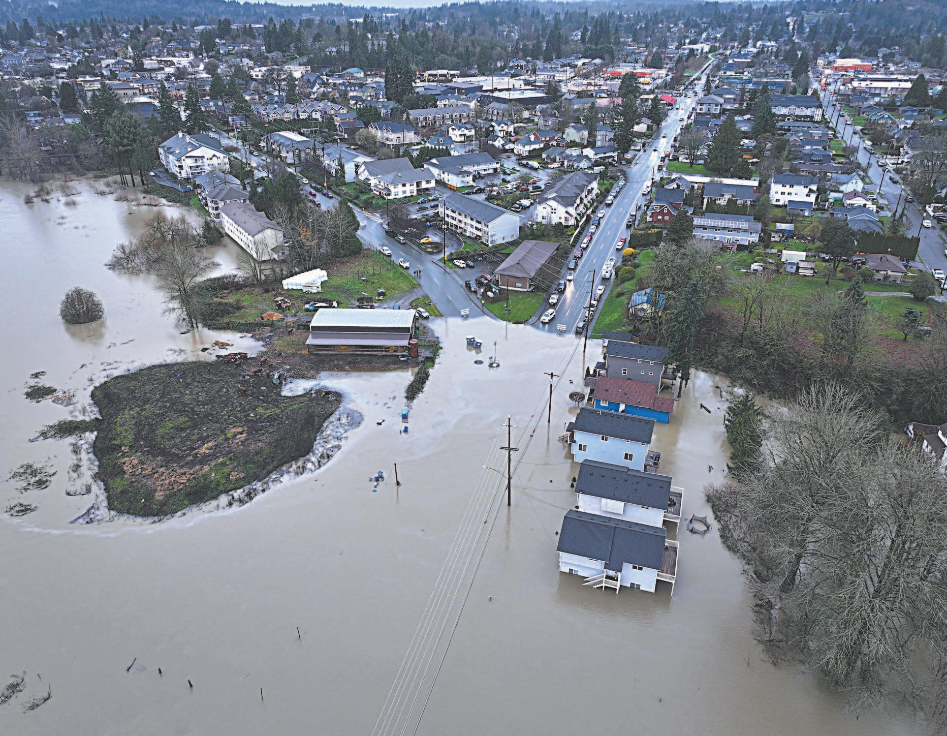 En un valle que conduce a las estribaciones del monte Rainier, al sureste de Seattle, agentes de la Policía del condado Pierce rescataron a personas en una zona de casas rodantes en Orting, donde el agua llega a la cintura. Parte del poblado estaba bajo órdenes de evacuación debido a preocupaciones sobre los niveles extremadamente altos del río Puyallup y los diques río arriba.