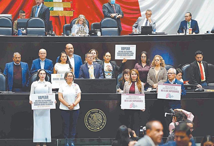 ticas no autorizadas legalmente, así como el uso ilícito del fentanilo. En contraste, la legisladora Iraís Reyes, de MC, calificó la reforma como la más prohibicionista, autoritaria y absurda en la historia. al tiempo de inhalar y exhalar un dispositivo. Por el PAN, el diputado Éctor Jaime Ramírez acusó a Morena y aliados de pretender el encarcelamiento de quienes sean sorprendidos con vapeadores. En respuesta, Zenteno subrayó que Morena prevé una reserva para que quede claro que no se sanciona al consumidor individual de vapeadores, sino a quienes los adquieren con fines de comercialización y lucro.