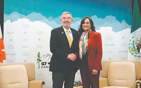 baum y el primer ministro Mark Carney hace unos meses en la Ciudad de México, el canciller Juan Ramón de la Fuente se reunió ayer con su homóloga, la ministra de Asuntos Exteriores de Canadá, Anita Anand. Los Secretarios afinaron agendas y revisaron contenidos de las reuniones bilaterales que se llevarán a cabo en nuestro país en las próximas semanas, así como la visita del ministro de Comercio de Canadá, Dominic LeBlanc. Asimismo, el titular de la SRE se encontró con sus homólogos de Corea, Cho Hyun; y de Reino Unido, Yvette Cooper, con quienes habló de las oportunidades de inversión que ofrece el Plan México (Agencias)