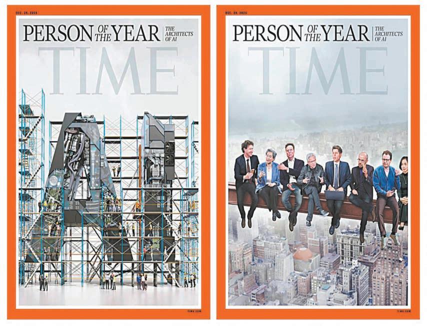rivalidades geopolíticas y llevaron robots a los hogares. La IA emergió, podría decirse, como la herramienta más relevante en la competencia entre grandes potencias desde el advenimiento de las armas nucleares”, añadió Time Una de las dos portadas de la revista es un homenaje a la famosa fotografía del 1932 de un grupo de obreros de la construcción durante su descanso en un rascacielos de Nueva York. En