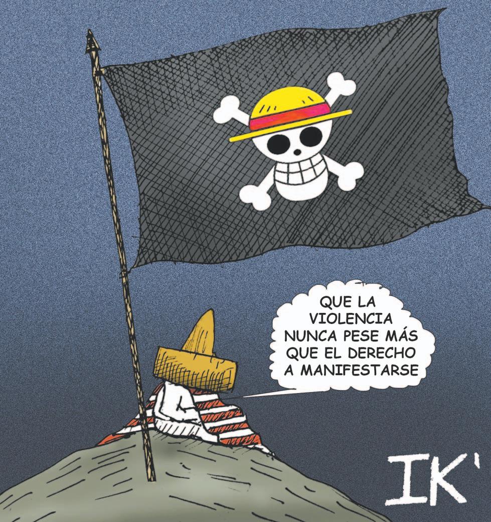 Dicha imagen, alusiva al anime One Piece, ha sido tomada como estandarte de la organización Generación Z, una de las convocantes a la marcha.