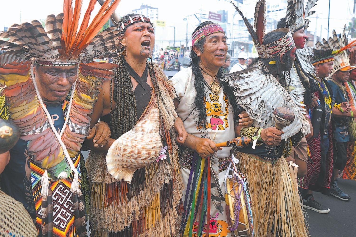 Muy presentes en la marcha, donde algunos portaron lanzas, arcos y flechas, los pueblos indígenas de la Amazonía fueron protagonistas de la primera semana de la COP tras haber chocado el martes con las fuerzas de seguridad que custodiaban la zona restringida de negociaciones.