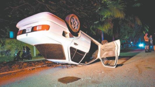 Conductor causa daños, vuelca y escapa del lugar del percance Municipios 39