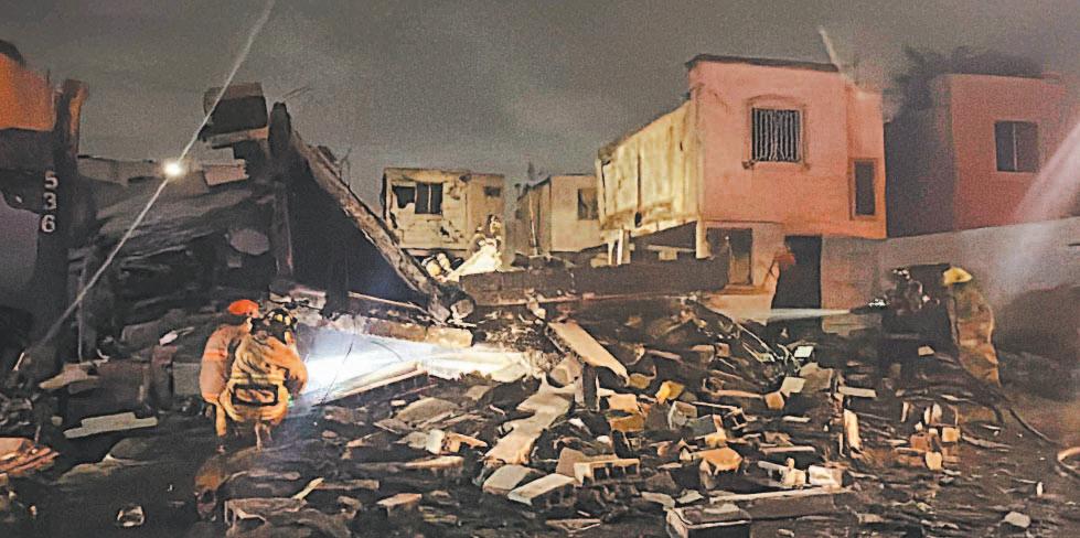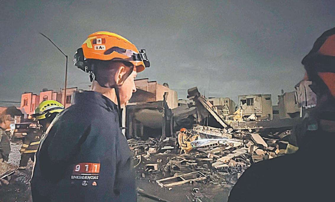 ELEMENTOS de rescate inspeccionaron los restos de las viviendas; el impacto cimbró estructuras completas y dejó escenas de devastación en la colonia Los Olmos. Vecinos señalaron que el propietario del inmueble donde inició el incidente almacenaba y vendía cohetes.- (Cuartoscuro)
