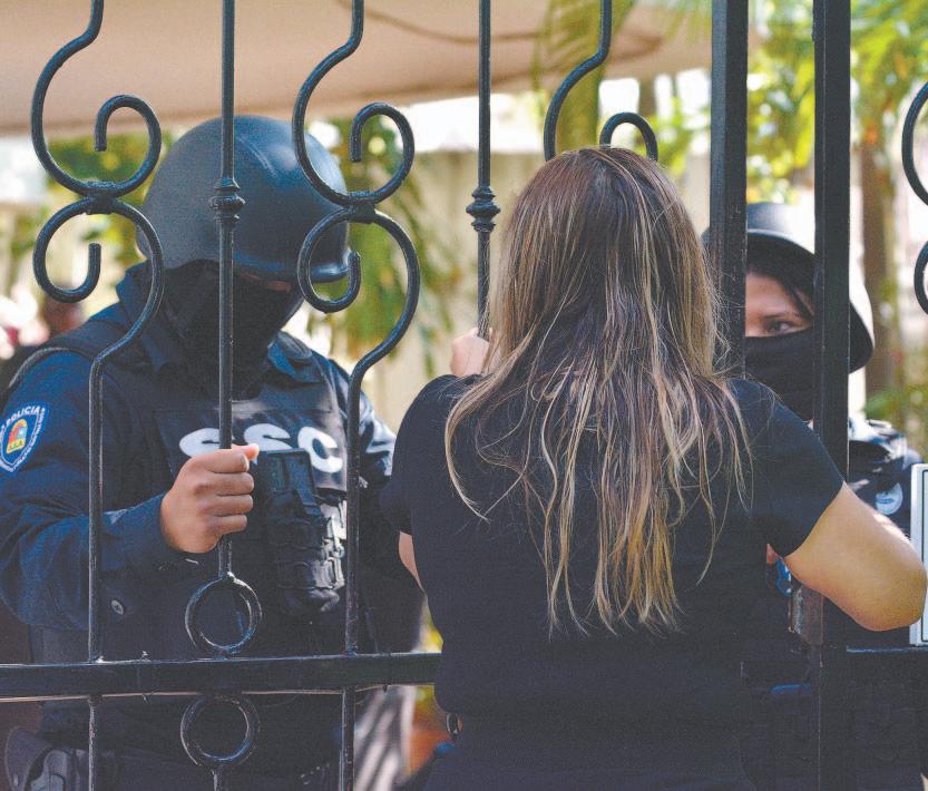 agentes de seguridad. Unos 60 miembros de la comunidad munduruku , ataviados en su mayoría con ropas y tocados tradicionales, se posicionaron ayer frente al acceso