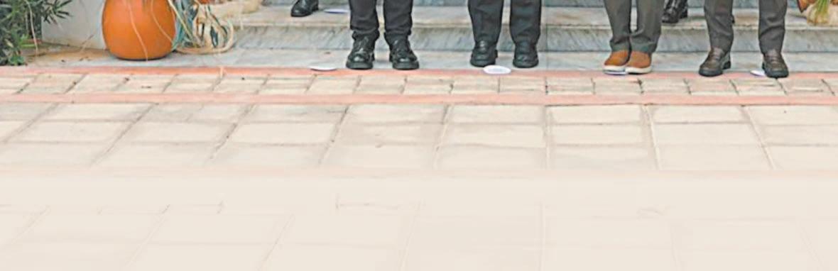 grupo ante el imponente edificio de columnas y luego se dirigió a la sala donde firmó el libro de visitas.