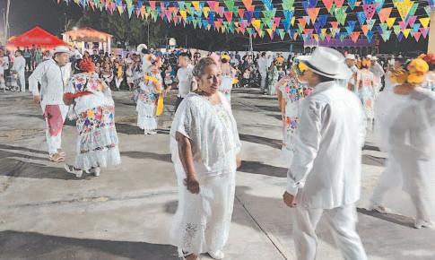 Posteriormente, los voladores y los juegos artificiales iluminaron el cielo y eso dio paso a los tradicionales Aires Yucatecos , pista que fue bailada por las parejas jaraneras.